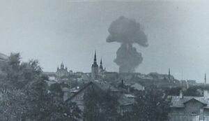 Tallinn was bombed by the Soviet Air Force on 9 and 10 March 1944, killing 757 people and destroying 8,000 buildings (about one-third of the capital). Among others, Harju Street, St. Nicholas' Church, and Estonia Theatre were hit. 36-38 Soviet bombers were shot down during the bombardment.