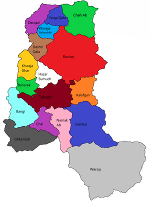 - ^ أ ب ت "Takhar Province Reference Map". humanitarianresponse.info. United Nations Office for the Coordination of Humanitarian Affairs. 9 February 2014. Retrieved 19 August 2020.