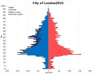- ^ أ ب ت ث ج ح "City of London Census 2001 profile". Census 2001. The Office for National Statistics. Archived from the original on 29 يونيو 2011. Retrieved 23 أكتوبر 2010.