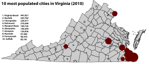 - ^ "Cities and Towns: Geography of Virginia". Virginiaplaces.org. Retrieved December 18, 2014.