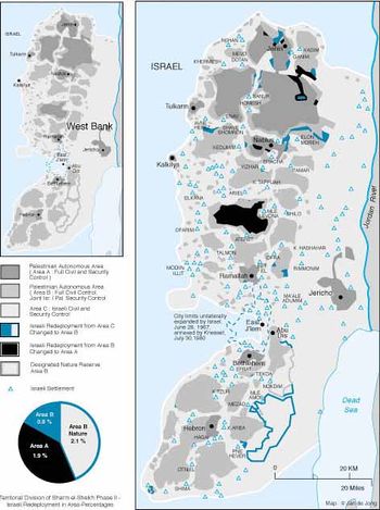 خريطة المرحلة الثانية لاعادة الانتشار الإسرائيلي بعد اتفاقية شرم الشيخ.