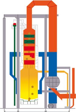 تنفذ العمليات الإتناجية الضرورية لاستمرار عمل المرجل على نحو متواصل وآلي وفقاً للشروط الفنية. ويبين الشكل (1) مكونات المخطط الإنتاجي في حال استخدام الوقود العضوي الصلب، ويحتوي المخطط على الوحدات الإنتاجية الآتية: