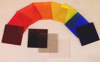 Optical filtering was first done with liquid-filled, glass-walled cells;[بحاجة لمصدر] they are still used for special purposes. The widest range of color-selection is now available as colored-film filters, originally made from animal gelatin but now usually a thermoplastic such as acetate, acrylic, polycarbonate, or polyester depending upon the application. They were standardized for photographic use by Wratten in the early 20th century, and also by color gel manufacturers for theater use.