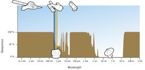 المراصد الفضائية والنطاقات العملية لأطوال موجاتهم. استـُلهـِم من http://www.spitzer.caltech.edu/Media/mediaimages/background.shtml