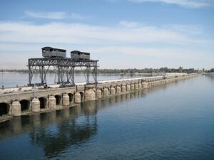 يمتد جسران حاجزان فوق نهر النيل عند هذه النقطة: أحدهما بناه البريطانيون عام 1906، والآخر "جسر الكهرباء" الذي شُيّد في التسعينيات. وقد تتعطل السفن، وخاصة سفن الرحلات النيلية التي تنقل السياح من الأقصر إلى أسوان التي تبعد 155 كيلومترًا (96 ميلًا) في اتجاه مجرى النهر، لساعات أثناء عبورها نظام الأقفال.