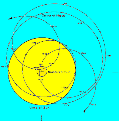 - The solar system's barycenter Simulations showing the effect each planet contributes to the solar system's barycenter