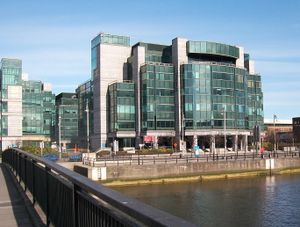 المركز المالي الدولي، دبلن، آيرلندا. تعتبر أيرلندا على قائمة المراكز المالية أوفشور، وأكبر ملاذ ضريبي عالمي،[1][2] وثالث أكبر مركز صرافة أوفشور في العالم.[3]