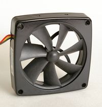 تتألف المروحة في أبسط أشكالها من محرك كهربائي متصل بنهايته شفرات أو ريش، عندما يدور المحرك تتحرك الريش مولدة تيارا هوائيا.
