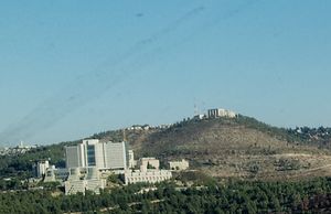 مستشفى هداسا عين كارم، وخلفه جبل أوره.