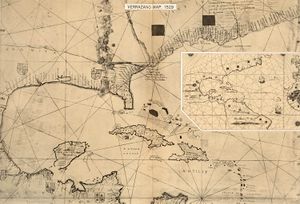 The Outer Banks were explored in 1524 by Giovanni da Verrazzano, who mistook Pamlico Sound for the Pacific Ocean, and concluded that the barrier islands were an isthmus. Recognizing this as a potential shortcut to Ming China, he presented his findings to King Francis I of France and King Henry VIII of England, neither of whom pursued the matter.[1]