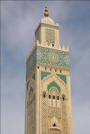 صورة مقربة لمئذنة مسجد الحسن الثاني.