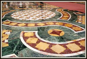 الزخارف الرخامية على أرضية مسجد الحسن الثاني.