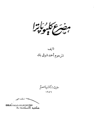 مصرع كليوپاترا من أجمل المسرحيات التي كتبها أمير الشعراء / أحمد شوقي وهي مسرحية شعرية تدور حول الأيام الأخيرة في حياة الملكة كليوبترا في الإسكندرية وموقعة أكتيوم البحرية