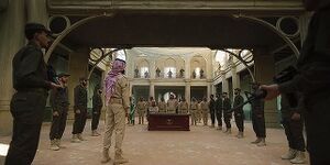يظهر الرقيب رشاش الشيباني، أثناء تدريبه مجموعة من الجنود على القنص، حيث تظهر قدرته على إصابة الأهداف، وكذلك خيلائه وثقته بنفسه، التي تلفت نظهر ضابطه من على بعد. | |