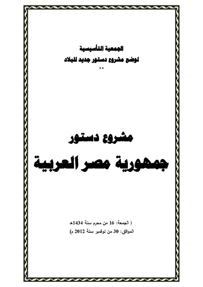 الدستور المصري، 26 ديسمبر 2012.لقراءة المسودة، اضغط على الصورة.