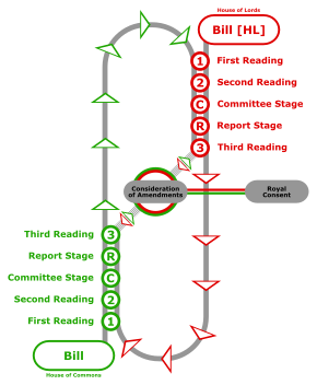 مشروع القانون Bill هو قانون متقرح تحت النظر من قبل الهيئة التشريعية.[1] لا يصبح مشروع القانون قانوناً حتى يتم تمريره من قبل الهيئة التشريعية، في معظم الحالات، تقوم السلطة التنفيذية بالتصديق على المشروع. بمجرد التصديق عليه، يصبح قانوناً.