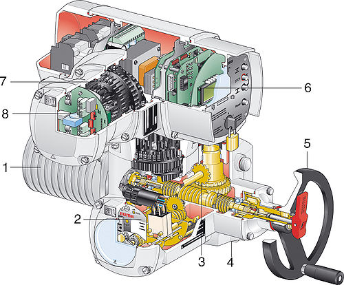 الصيغة الأساسية في معظم المشغلات الكهربائية مجهزة handwheel لتشغيل المحركات خلال التكليف أو انقطاع الكهرباء. فإن لم يتحرك handwheel السيارات خلال العملية.
