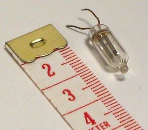 يـُرسل تيار كهربائي ضعيف سواء كان تياراً مستمراً أو متردداً داخل الأنبوب، فيتوحج بضوء أحمر برتقالي. وتوليفة الغاز العادية تحتوي على 99.5% نيون و0.5% أرجون، ويتميز الأرجون بأنه يضيئ عند جهد كهربائي ابتدائي منخفض عن النيون النقي. ولابد أن يصل الجهد الكهربائي أولاً إلى الجهد الابتدائي لكي تبدأ الإضاءة. وهذا هو ما يسمى بعملية التفريغ الكهربي.