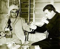 صدام حسين يوقد سيجاره من قداحة الملا مصطفى البارزاني.