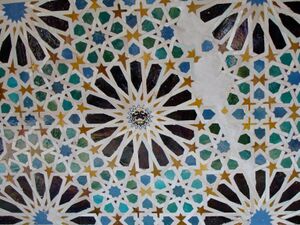 Hexadecagrams (16-sided star polygons) are included in the Girih patterns in the Alhambra.[7]