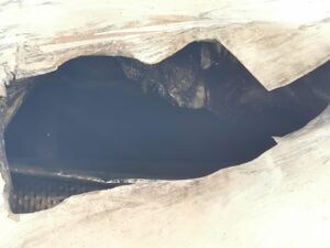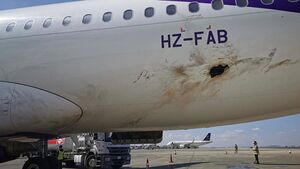 ثقب في جسم الطائرة المدنية المحترقة بمطار أبها.