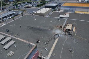 مطار أبها بعد ضربه بالصاروخ الحوثي، 24 يونيو 2019.
