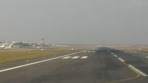 The airport has two runways – the 3،661 m (12،011 ft) long primary runway 07/25 (Northeast – Southwest orientation) and the 2،890 m (9،480 ft) long secondary runway 12/30 (Northwest – Southeast orientation).[56][57] The runways are equipped with CAT-I Instrument Landing System (ILS) for IFR approach with Precision Approach Path Indicator (PAPI) landing aids.[58] An upgraded ILS was installed on runway 07/25 in 2017.[59] As the airport is not equipped with a CAT-III landing system, which will enable operations in poor visibility conditions, disruptions in flight operations happen in poor weather conditions.[60] In 2012, the AAI acquired additional land to install new landing lights and upgrade the ILS.[61]