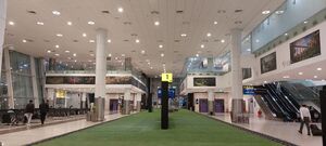 With the new integrated terminal opening in May 2023, the old Terminal 3 was demolished to extend the new integrated terminal (Terminal 2).[90][91] This second phase of construction involved the expansion of the existing terminal by 60،000 m2 (650،000 sq ft). The complete new terminal building would be spread over 197،000 m2 (2،120،000 sq ft) and have a handling capacity of 10 million passengers.[92] The terminal has 100 check-in counters, 11 automated tray retrieval systems, six self-bag drops and six baggage reclaim belts. It is equipped with a passenger flow monitoring system (PFMS) that helps in management of passenger operations.[88]