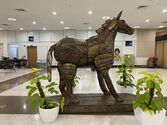 As a part of expansion plan unveiled in 2018, a new integrated terminal and a satellite terminal were planned to increase the terminal area to 160،000 m2 (1،700،000 sq ft) with a capacity of 35 million passengers, up from then existing capacity of 18 million.[84] The satellite terminal near the secondary runway is connected to the main buildings by a 1.5 km (0.93 mi) long tunnel built at a cost of قالب:INRconvert.[85][86] The new integrated Terminal 2 replaced the older Terminals 2 and 3 which were situated between Terminals 1 and 4. It commenced partial operations on 7 July 2023.[87] The new terminal is designed with the inspiration from Tamil culture, with the building's exterior inspired from Dravidian Architecture of Hindu temples and the roof inspired from pleats of sari worn by Bharatanatyam dancers. The flooring and the false ceiling feature Kolam patterns and colourful murals.[88] The outside of the terminal features a 1,730-kilogram Nachiarkoil lamp.[89]