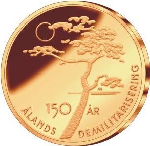 - In 2006, Finland celebrated the 150th anniversary of the demilitarisation of the Åland Islands by issuing a commemorative coin. Its obverse depicts a pine tree, very typical in the Åland Islands, and the reverse features a boat's stern and rudder, with a dove perched on the tiller, a symbol of 150 years of peace.