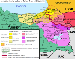المطالب السوڤيتية تقدم بها الأرمن إلى زعماء حلفاء الحرب العالمية الثانية[بحاجة لمصدر]؛ إلا أن معارضة برزت من رئيس الوزراء البريطاني ونستون تشرشل الذي عارض تلك المطالب كأراضي اضافية يمد فيها الاتحاد السوڤيتي سلطانه، بينما شعر الرئيس الأمريكي هاري ترومان أن الأمر يجب ألا يهم أي طرف غير السوڤيت والأتراك. وفي النهاية، تخلى الاتحاد السوڤيتي عن مطالبه من تركيا.[بحاجة لمصدر]
