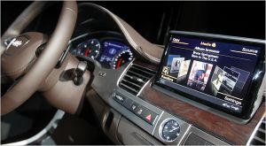 ظام واحد على الطريق في خريف هذا العام من أودي يتيح للسائقين سحب المعلومات وهم يقودون. يتوجه الى ماديسون سكوير غاردن في لعبة كرة السلة؟ البوب أسفل لوحة اللمس ، توجيه أصابع خربشات لفظة "نيكس" والحصول على دخول ويكيبيديا على الساحة ، والصور والاستعراضات من المطاعم القريبة ، والرسوم المتحركة من سبل الوصول الى هناك. وتلاحظ أنه ينبثق عندما يتم تشغيل نظام أودي على ما يلي : "يرجى فقط استخدام خدمات الانترنت عندما تسمح لك الظروف المرورية على القيام بذلك بامان".