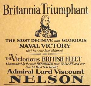لقد استطاع "هوراشيو نيلسون" أن يؤكد تفوقه ومهارته في قيادة المعارك البحرية، وتفوق ومهارة جنود وضباط البحرية الإنجليزية وقوة وتفوق سفن وتسليح الأسطول الإبريطاني عندما تغلب في عام 1805م على أكبر حشد من سفن الأسطول الفرنسي و الأسطول الإسباني في معركة "ترافلغار" (الطرف الأغر) "trafalgar".