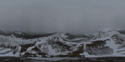 Aerial panorama of the Didgori monument in winter.