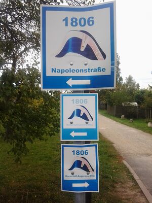 Three signs of trails near Jena named after Napoleon and his marshals Jean Lannes and Charles-Pierre Augereau