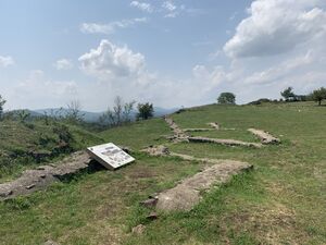 Emperor Napoleon III was a patron of archaeology and funded research into France's Gallic past, including the battles of Gergovia and Alesia.[4] As a result of the sponsored dig at Gergovia, the town of Merdogne, the closest to the commonly agreed likely site of the battle, was renamed to Gergovie in honor of its past in 1865. Interest has continued since the 1800s. On the plateau where the battle occurred, the Gergovie Monument was constructed in 1900 in honor of the event. An archaeological dig in the 1990s discovered what they believe to be the trench that Caesar describes being dug between the two Roman camps as well as various Roman artifacts from the period.[4] A new museum was constructed from 2015–2019 dedicated to the battle, the Musée de Gergovie; the museum opened in October 2019.[6]