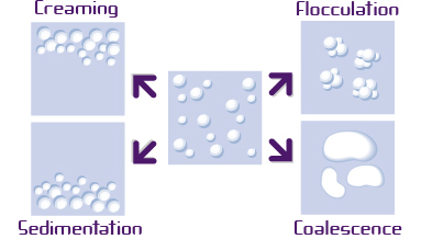 - لا تتغير أبعاد الأجزاء الصلبة المبعثرة في أثناء عملية تخزين المعلق، فهي لا تتعرض لحادثة الاندماج التي تتعرض لها القطيرات المبعثرة في المستحلبات.