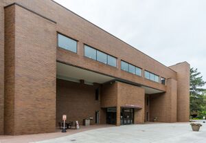 The main campus is housed on a 1،300 acre (5.3 km2) property. This property is largely covered with woodland and fresh-water swamp making it a very diverse wetland that is home to a number of somewhat rare plant species. The campus comprises 237 buildings and 5.1 million square feet (474,000 m2) of building space. The nearly universal use of bricks in the campus's construction – estimated at 15,710,693 bricks as of August 6, 2018[14] – prompted students to give it the semi-affectionate nickname "Brick City," reflected in the name of events such as the annual "Brick City Homecoming." Though the buildings erected in the first few decades of the campus's existence reflected the architectural style known as brutalism, the warm color of the bricks softened the impact somewhat. More recent additions to the campus have diversified the architecture while still incorporating the traditional brick colors. The main campus was listed as a census-designated place in 2020.[15]