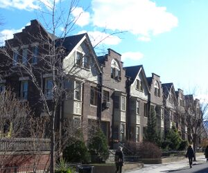 As part of Robert Moses' plan for urban renewal in New York City, Pratt's physical campus saw the greatest amount of change in its history. Prior to the 1950s, the school was located in separate buildings located on several public streets. However, after Moses' clearance of many of the structures located between Pratt's buildings, the land was given over to the school, and a true campus was established. Ryerson Street, Grand Avenue, Steuben Street, and Emerson Place ceased to allow automobile traffic, and the campus became enclosed, forming the Grand Mall to connect the institute's buildings.[23] The elevated train running along Grand Avenue between the East Building/Student Union and the Engineering Quad was dismantled. As a result of new real estate, the school was able to build several new structures, all designed by the firm of McKim, Mead & White, including men's and women's dormitories and a new student union.[24] In addition, Moses' construction projects around the school helped to build the School of Architecture. Research funds were granted to the school to help discover new building techniques. By 1963, the urban planning department formed the Pratt Center for Community Development in an attempt to revitalize Pratt's surrounding neighborhood and Brooklyn.[25]