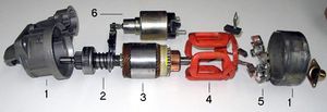 عندما يدير السائق المفتاح في أداة التشغيل يسري تيار كهربائي من بطارية السيارة إلى الملف اللولبي في مفتاح التشغيل. يُجذب المكبس وتكتمل دائرة المحرك من خلال الملامسات، ويبدأ غلاف الأرماتور في الدوران. ثم يدير الترس الصغير الحذافة التي تدير العمود المرفقي فيحرك بدوره المكابس ويشغل السيارة.