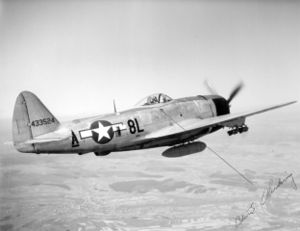 رپبلك P-47دي بقنابل انشطارية على الأجنحة وخزان وقود تحت جسم الطائرة، 1945