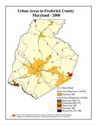 "Metropolitan sprawl puts urban in suburban". 2012. Retrieved February 16, 2014. - ^ "Frederick County, Maryland – Government". March 5, 2008. Retrieved August 16, 2008 – via Maryland State Archives.