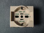 A so-called 'universal socket', which meets no standard[1] but is intended to accept a number of different plug types.