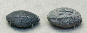 ignored (help) - ^ أ ب "Lead sling bullet; almond shape; a winged thunderbolt on one side and on the other, in high relief, the inscription DEXAI "Catch!"". Retrieved 30 April 2012.