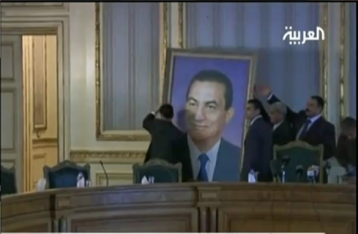 ملف:ازالة صورة مبارك من مبنى رئاسة الوزراء 13 فبراير 2011.jpg