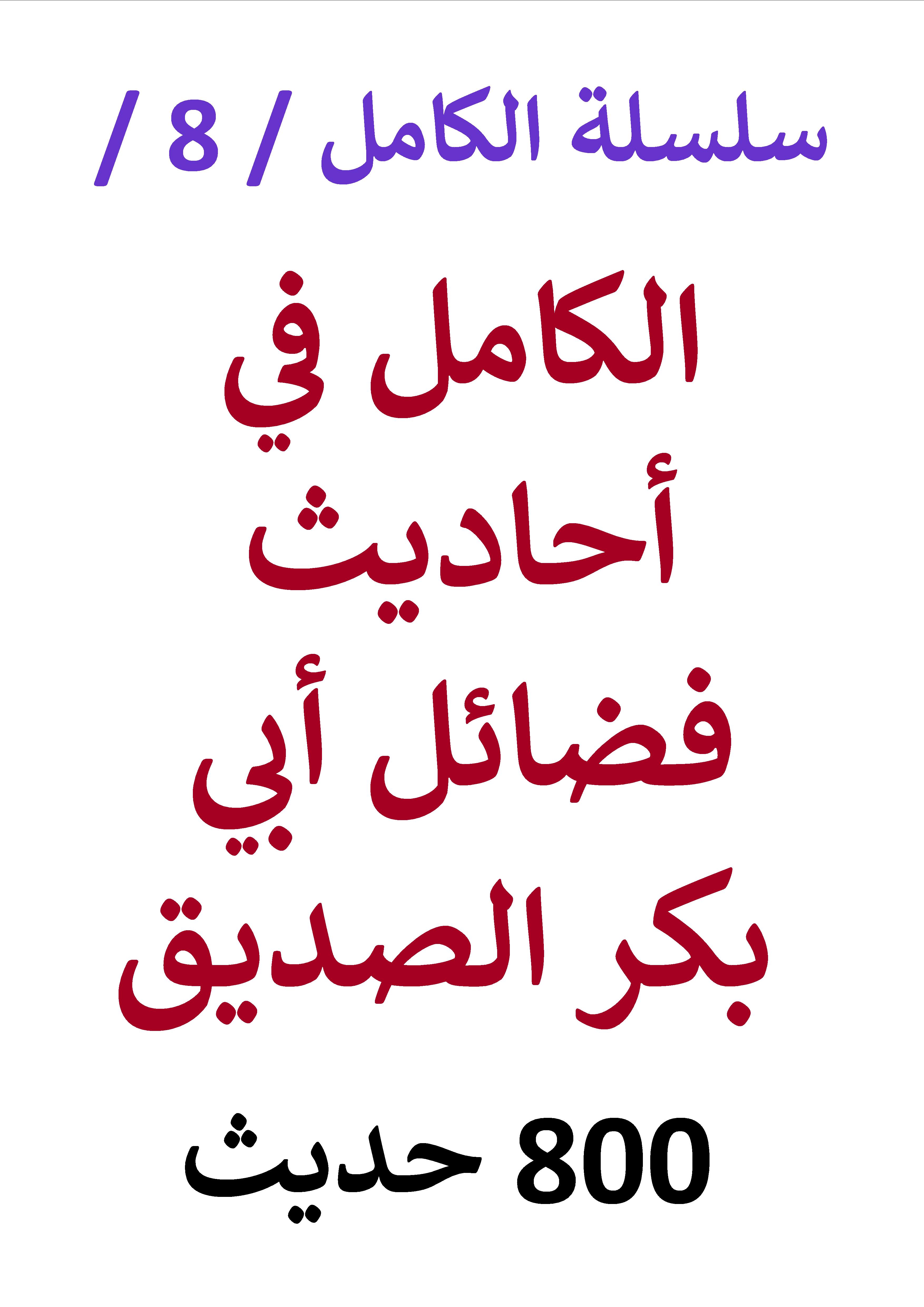 سلسلة الكامل / كتاب رقم 8 / الكامل في أحاديث فضائل أبي بكر الصديق / ( 800 ) حديث