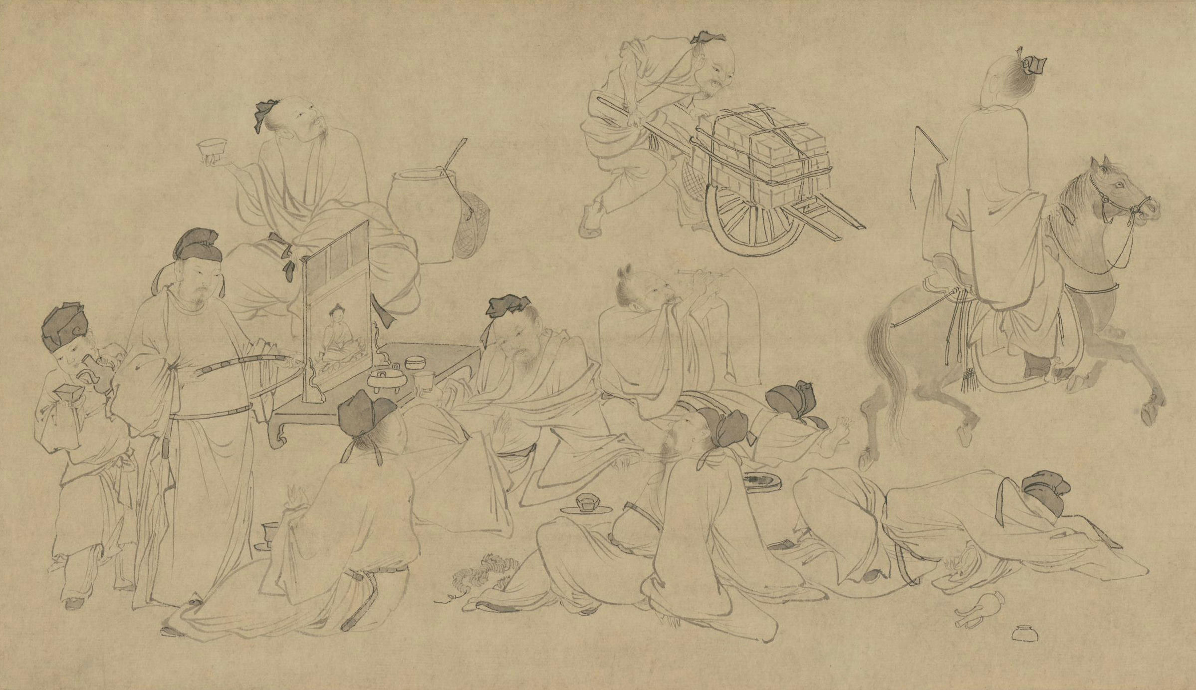 ملف:杜堇画古贤诗意卷局部 饮中八仙.jpg