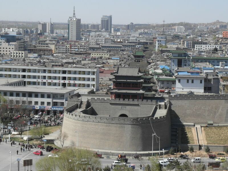 الصينية: 依次可见“六楼骑街”及远处的镇北台 |
