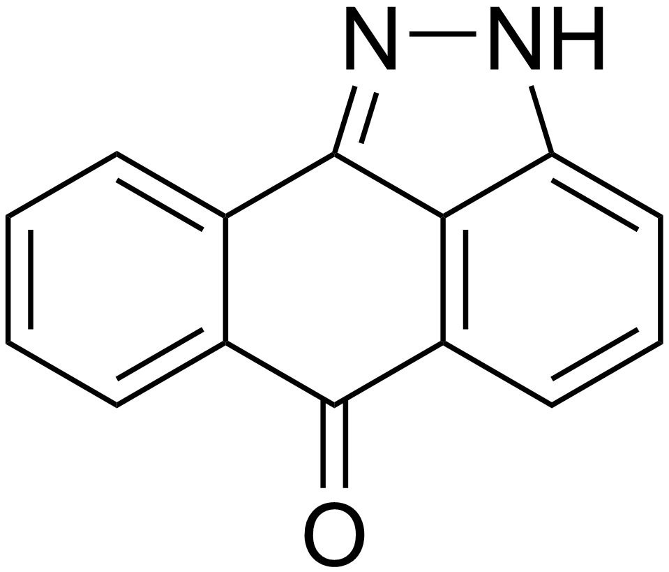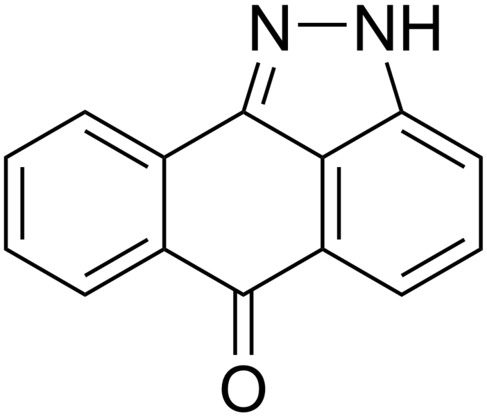 English: Chemical structure of 1,9-Pyrazoloanthrone (Pyrazolanthrone; Pyrazoleanthrone; SP 600125; Anthra[1,9-cd]pyrazol-6(2H)-one