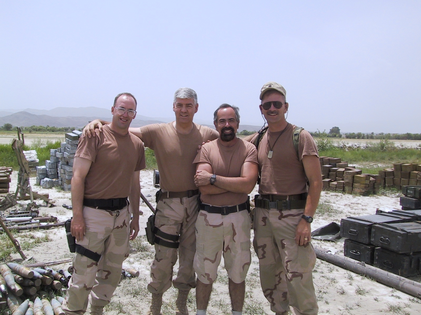 English: Randy Watt, C.O. of the Chapman special forces base in Afghanistan poses for a photograph with U.S. Army soldiers in July 2002. |